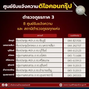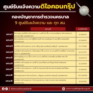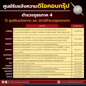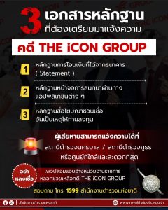 #สำนักงานตำรวจแห่งชาติเปิด “ศูนย์รับแจ้งความ คดี THE iCON GROUP” ทั่วประเทศ 9 ศูนย์ใน กทม. พื้นที่ดูแลของกองบัญชาการตำรวจนครบาล และ 76 ศูนย์ ทุกจังหวัดในพื้นที่การดูแลของตำรวจภูธรภาค 1 – 9 เพื่ออำนวยความสะดวกให้แก่ประชาชนผู้เสียหาย และลดความยุ่งยากในการแจ้งความ 21 ตุลาคม 2567 โดย adm_chaam adm_chaam / ข่าวประชาสัมพันธ์,ข่าวภารกิจผู้บังคับบัญชา