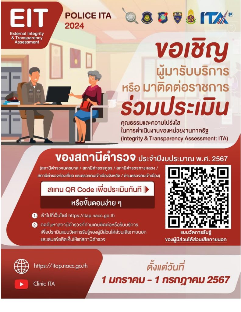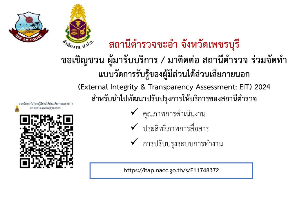 สถานีตำรวจภูธรชะอำ ขอเชิญชวนประชาชนร่วมประเมินคุณธรรมและความโปร่งใสในการดำเนินงานภาครัฐ (Integrity & Transparency Assessment: ITA)