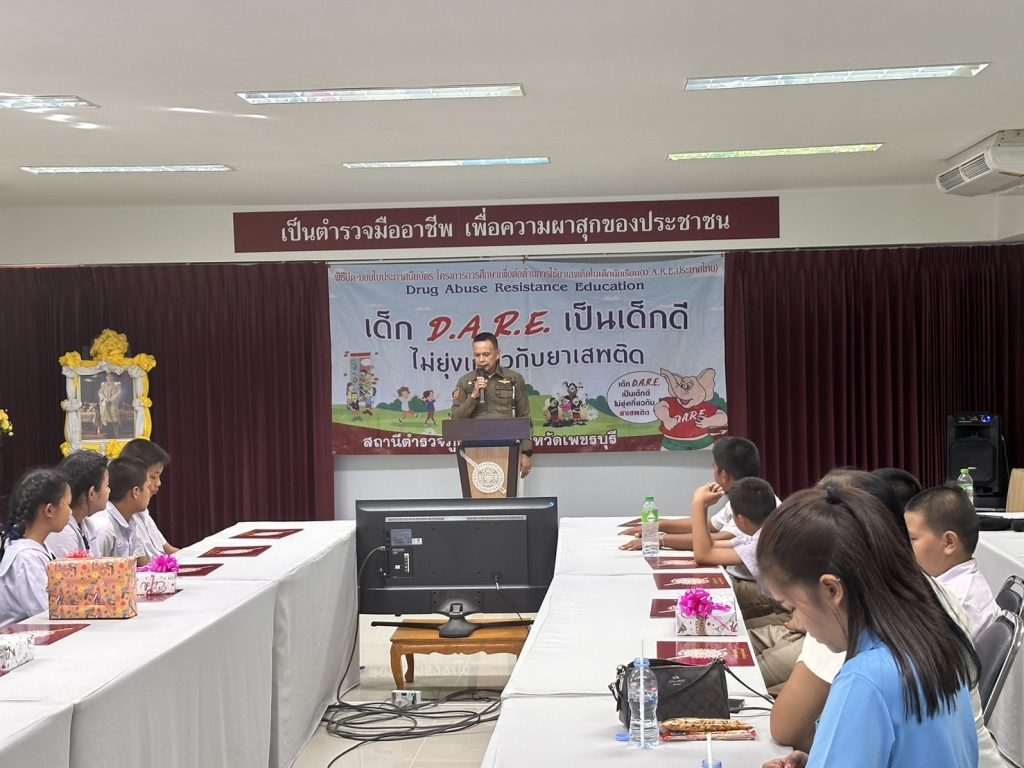 ข้าราชการตำรวจ(ทำหน้าที่ครูแดร์)พร้อมนักเรียนนายร้อยตำรวจ มอบใบประกาศนียบัตรให้แก่นักเรียนที่จบหลักสูตร โครงการการศึกษาเพื่อต่อต้านยาเสพติด (D.A.E.R.ประเทศไทย) โรงเรียนเทศบาล 3 วัดเนรัญชรา ณ ห้องประชุม สภ.ชะอำ