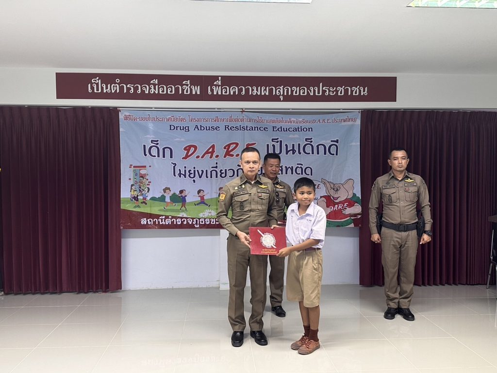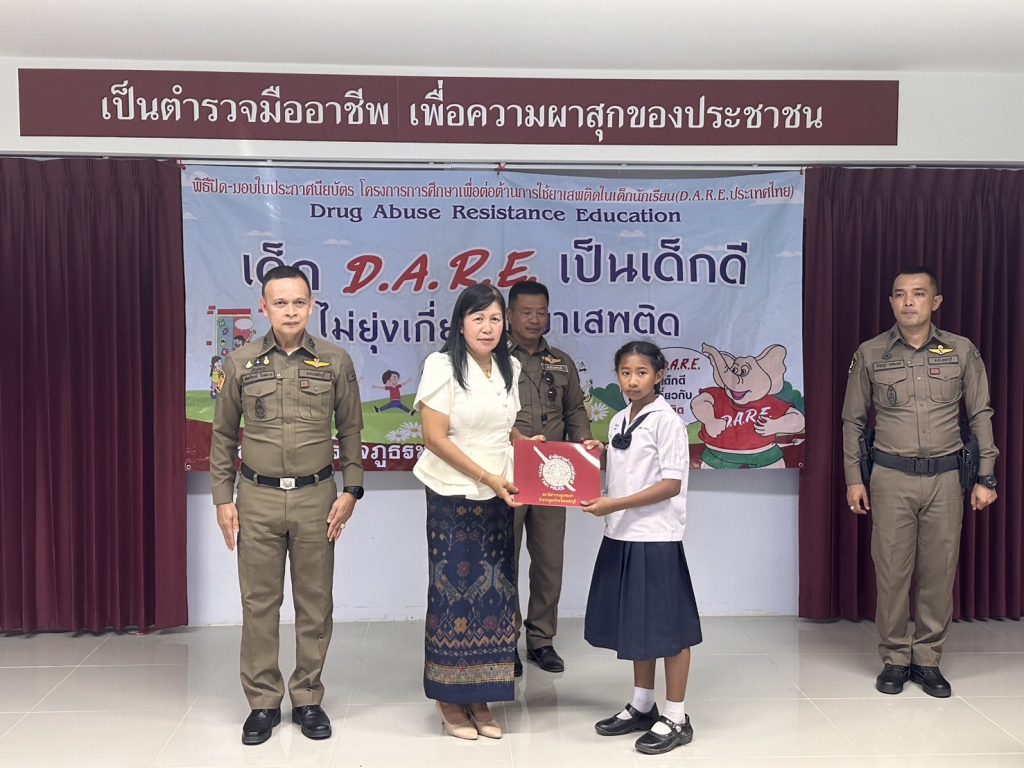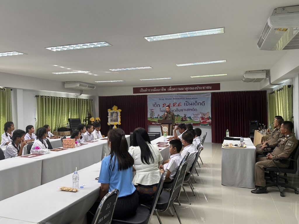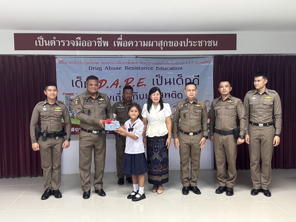 ข้าราชการตำรวจ(ทำหน้าที่ครูแดร์)พร้อมนักเรียนนายร้อยตำรวจ มอบใบประกาศนียบัตรให้แก่นักเรียนที่จบหลักสูตร โครงการการศึกษาเพื่อต่อต้านยาเสพติด (D.A.E.R.ประเทศไทย) โรงเรียนเทศบาล 3 วัดเนรัญชรา ณ ห้องประชุม สภ.ชะอำ