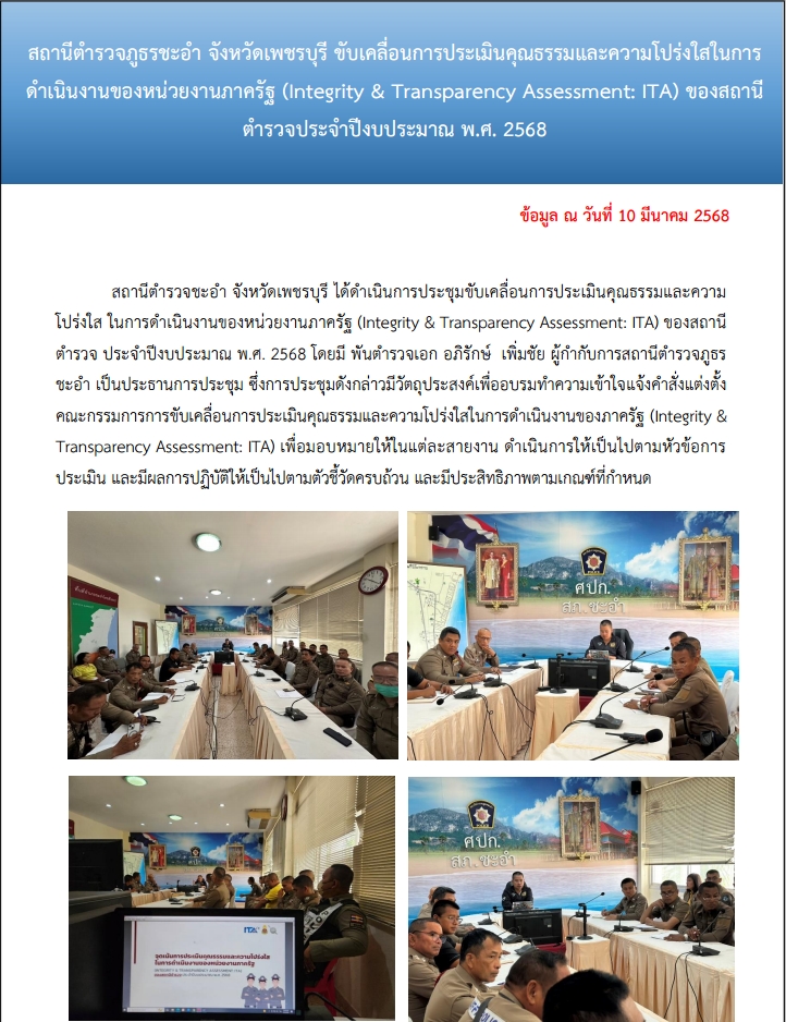 สถานีตำรวจภูธรชะอำ จังหวัดเพชรบุรี ขับเคลื่อนการประเมินคุณธรรมและความโปร่งใสในการดำเนินงานของหน่วยงานภาครัฐ